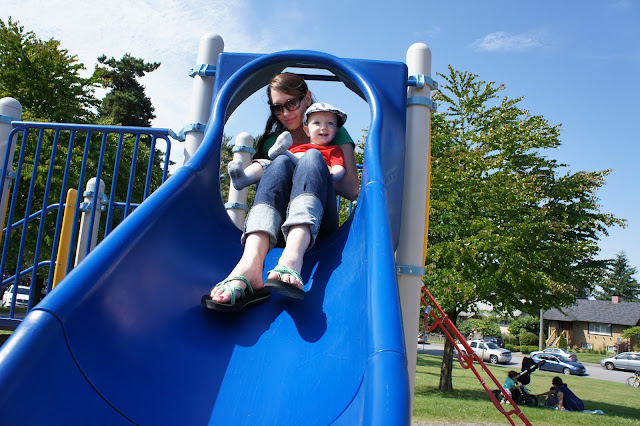 We played at the park simultaneous to watching the parade, so the boys were happily entertained. It was a good thing we played at the park before it ended because as soon as it was over a hoard of children came to play.
