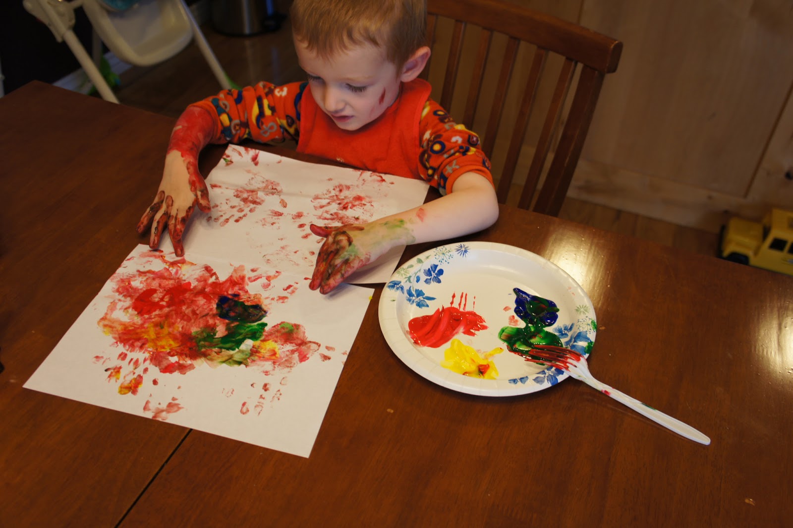 Jonathan loves to paint. He not only paints paper. He loves to paint his hands, arms, and even his feet. It is a pretty messy business, but it is a lot of fun too!