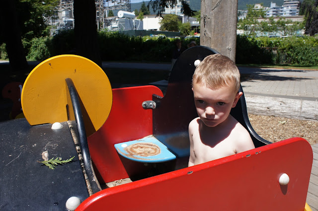 We went to John Lawson park near the beach in West Vancouver. It was hot and wonderful. We had a picnic and then got some TCBY.